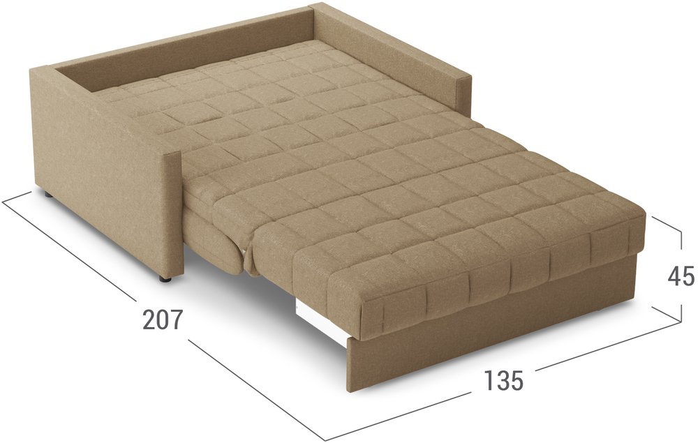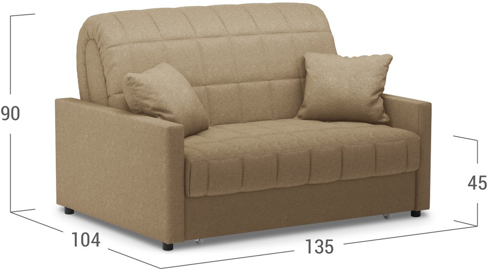 - При минимальных габаритах диван обладает отличным спальным местом.