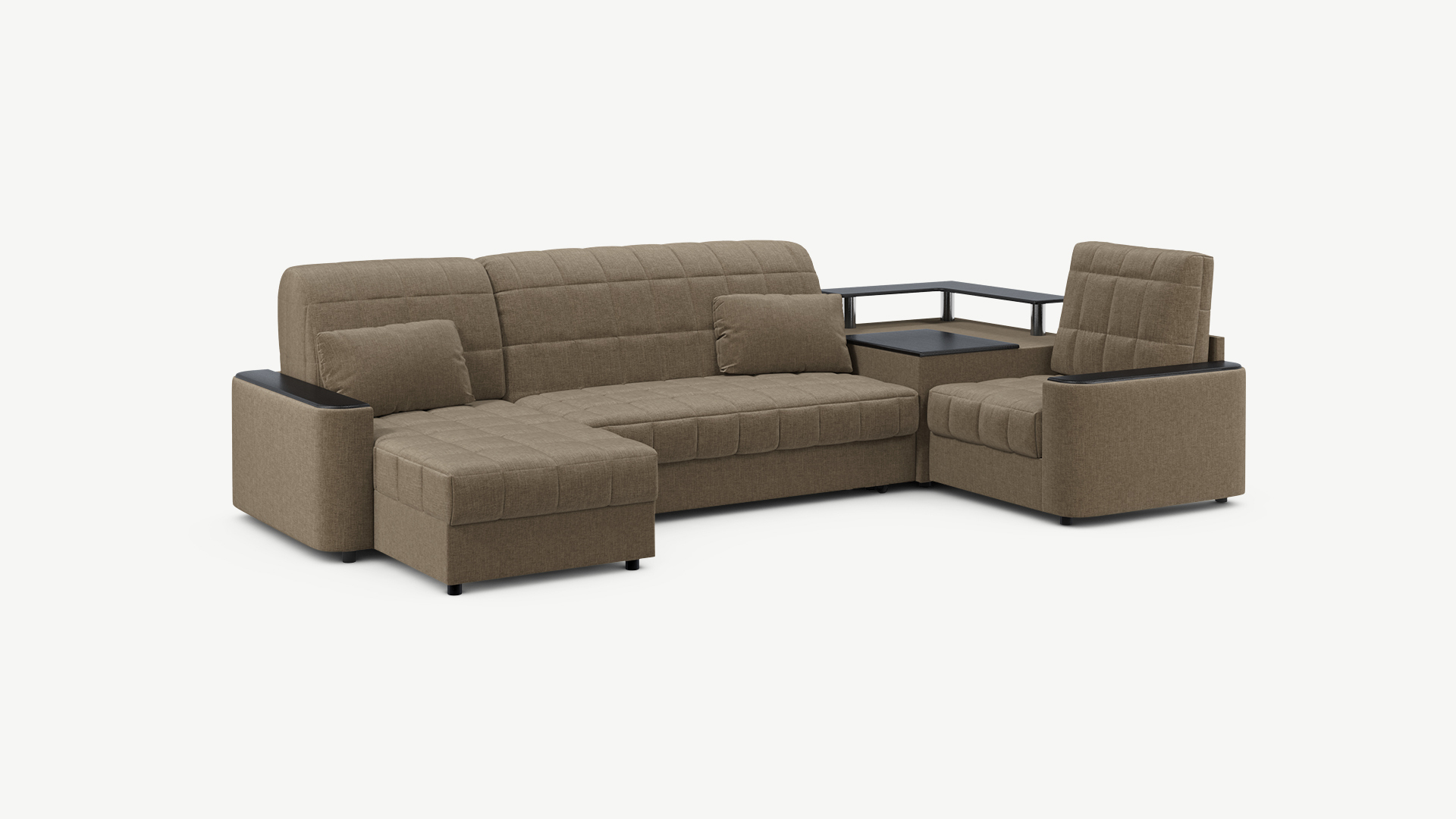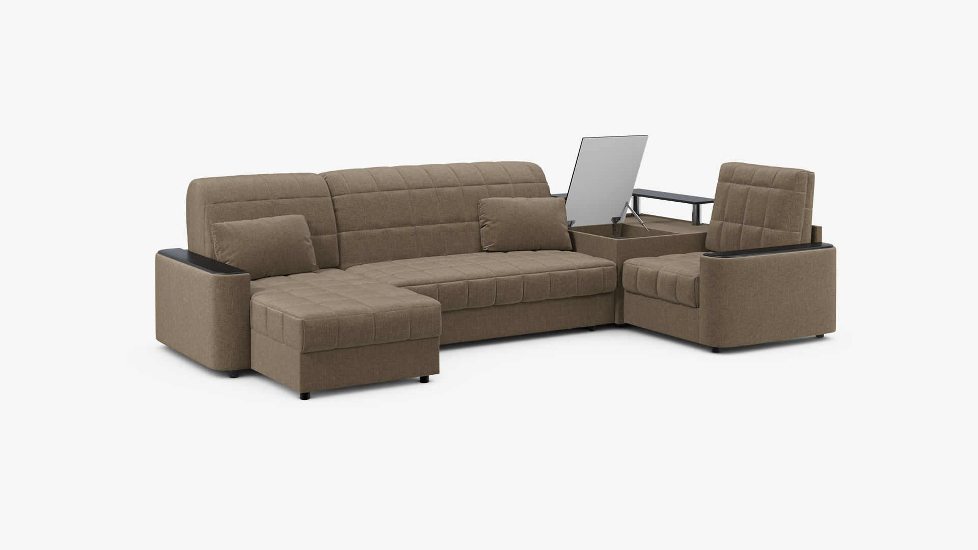 Выбирая угловой диван со столиком, Вы сможете проводить время с максимальным комфортом, многократно повысив функциональность дивана. Все дело в том, что под столешницей модуля расположена вместительная емкость для хранения. Кроме того, поверхность столика — идеальное пространство для чаепития в приятной компании, а также место для множества актуальных мелочей — от ноутбука до косметики.