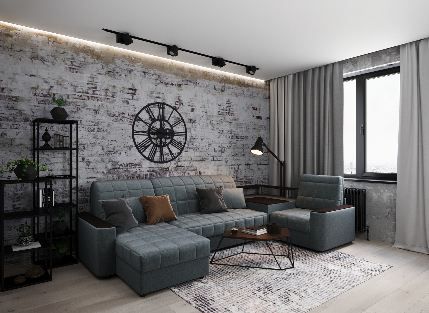 Объемные подлокотники — стильная деталь, отлично вписывающая диван в интерьер современной городской квартиры.