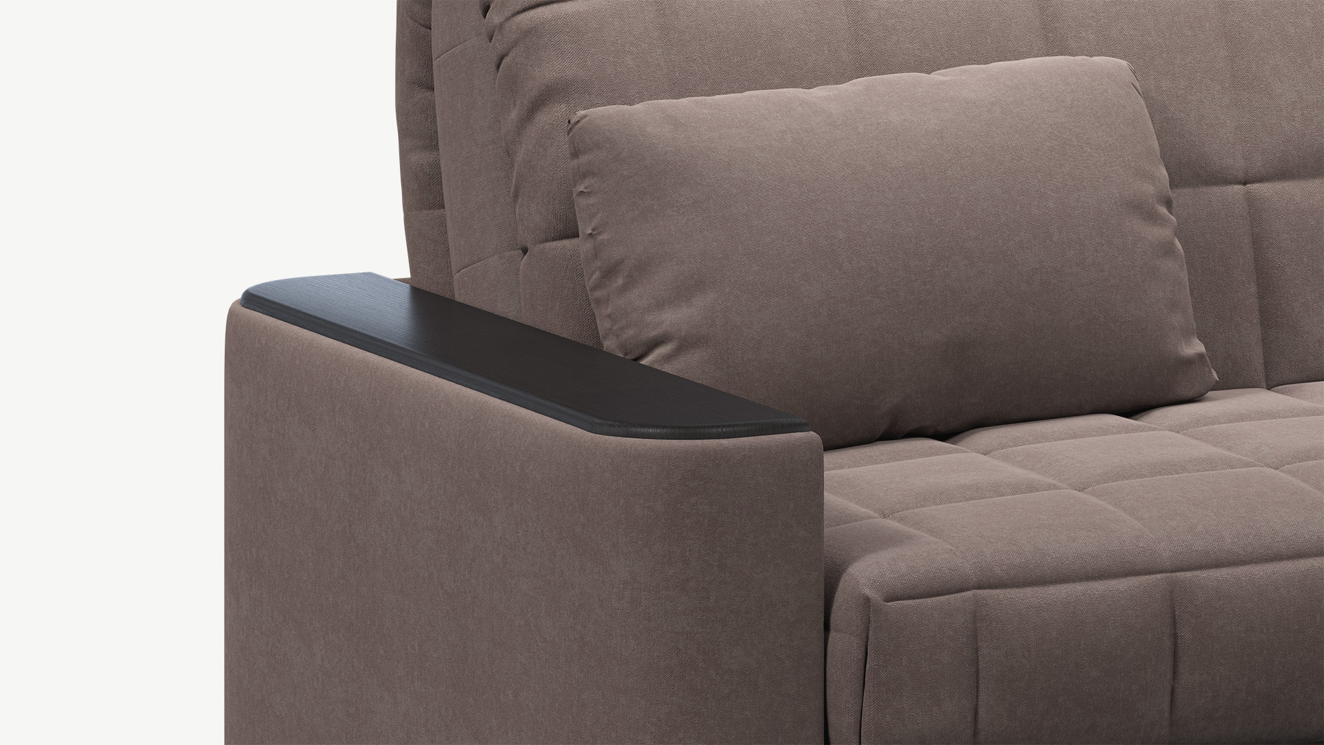 Объемные подлокотники — стильная деталь, отлично вписывающая диван в интерьер современной городской квартиры.