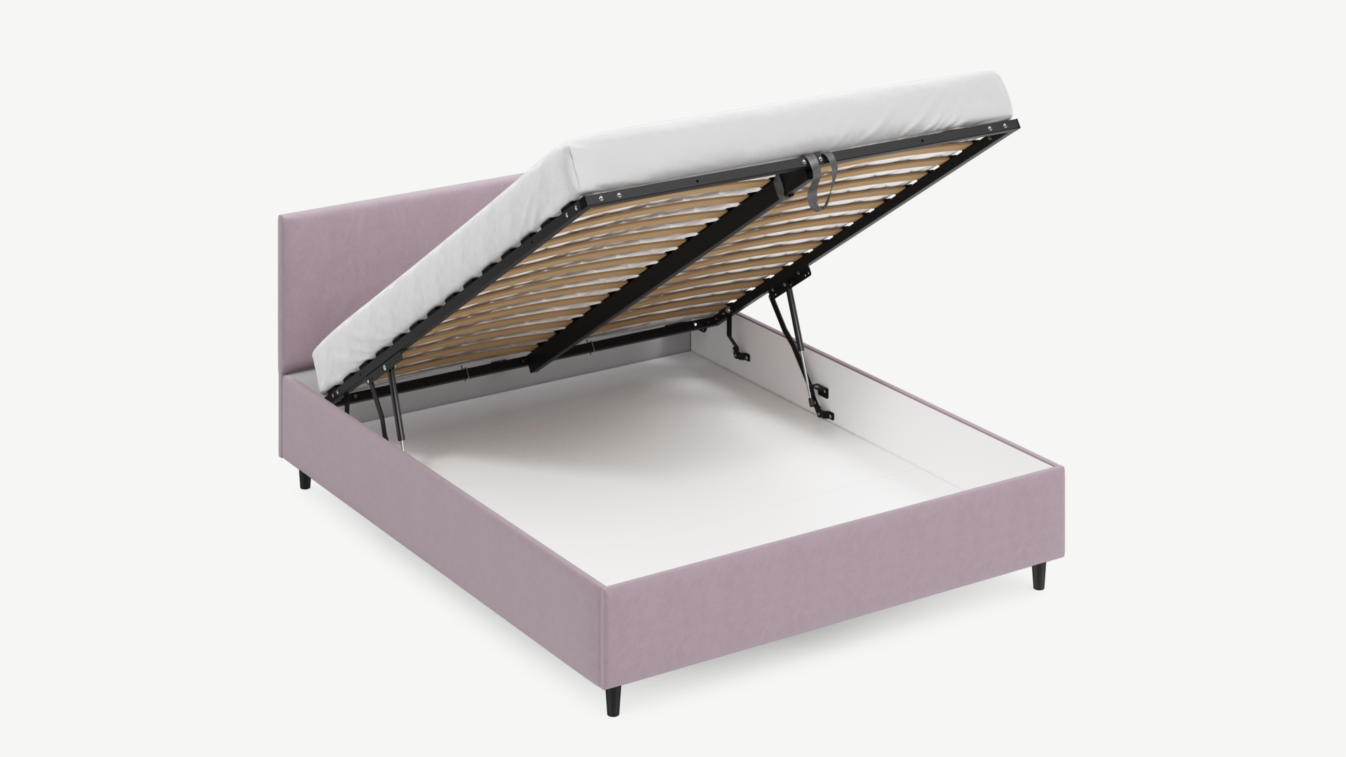 - Скрытая под основанием вместительная емкость без внутренних перегородок позволяет использовать всю площадь подкроватного пространства для хранения вещей.