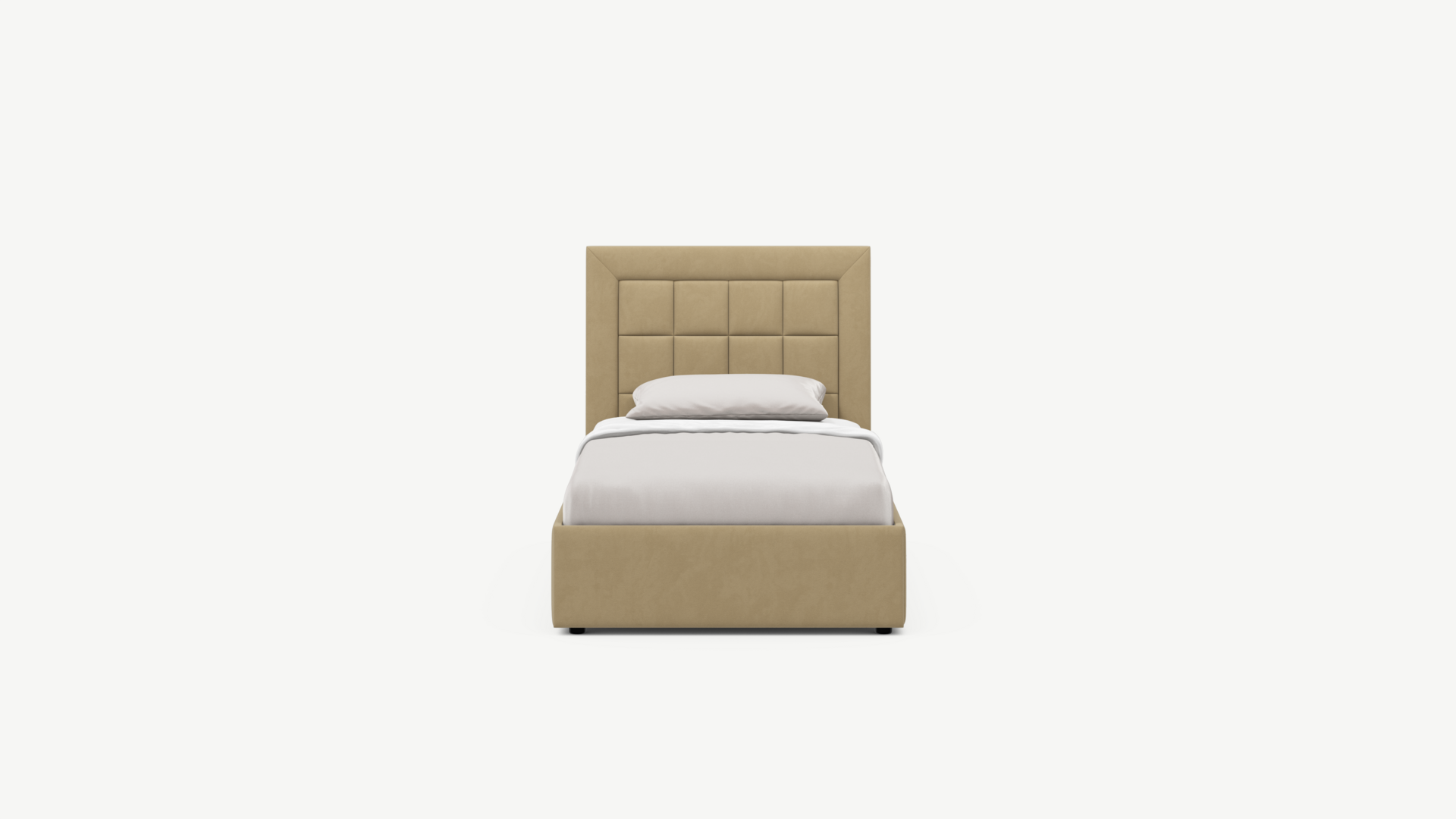 Изголовье декорировано рельефным рисунком стежки в крупный квадрат, получившим особую фактуру за счет глубины шва.