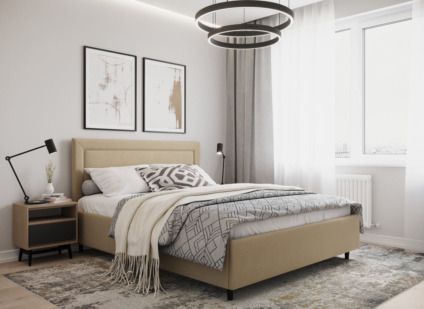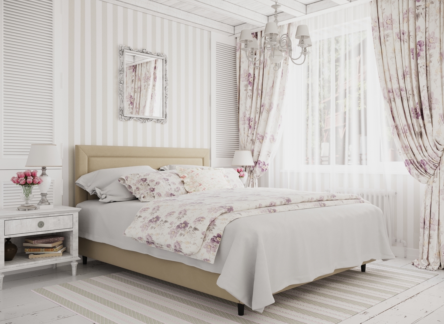 Создать гармоничный интерьер, а также целостный образ спальни помогут дополнительные аксессуары - например, тумбы, банкетки, подушки.