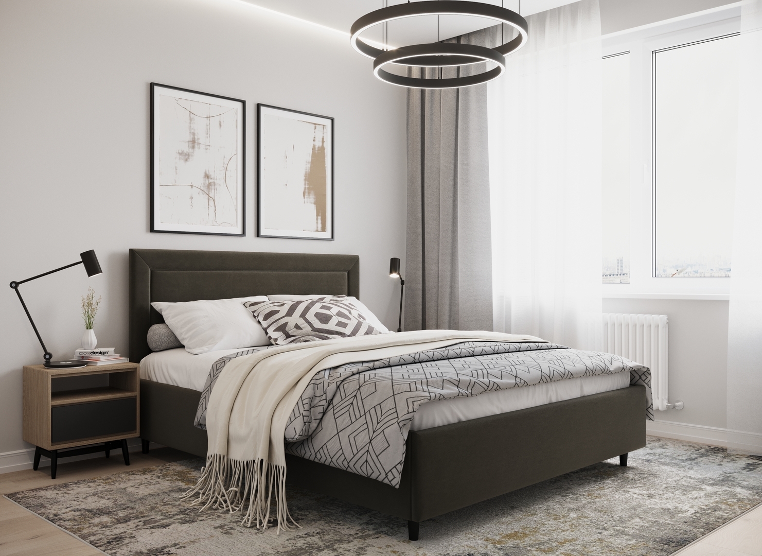 Создать гармоничный интерьер, а также целостный образ спальни помогут дополнительные аксессуары - например, тумбы, банкетки, подушки.