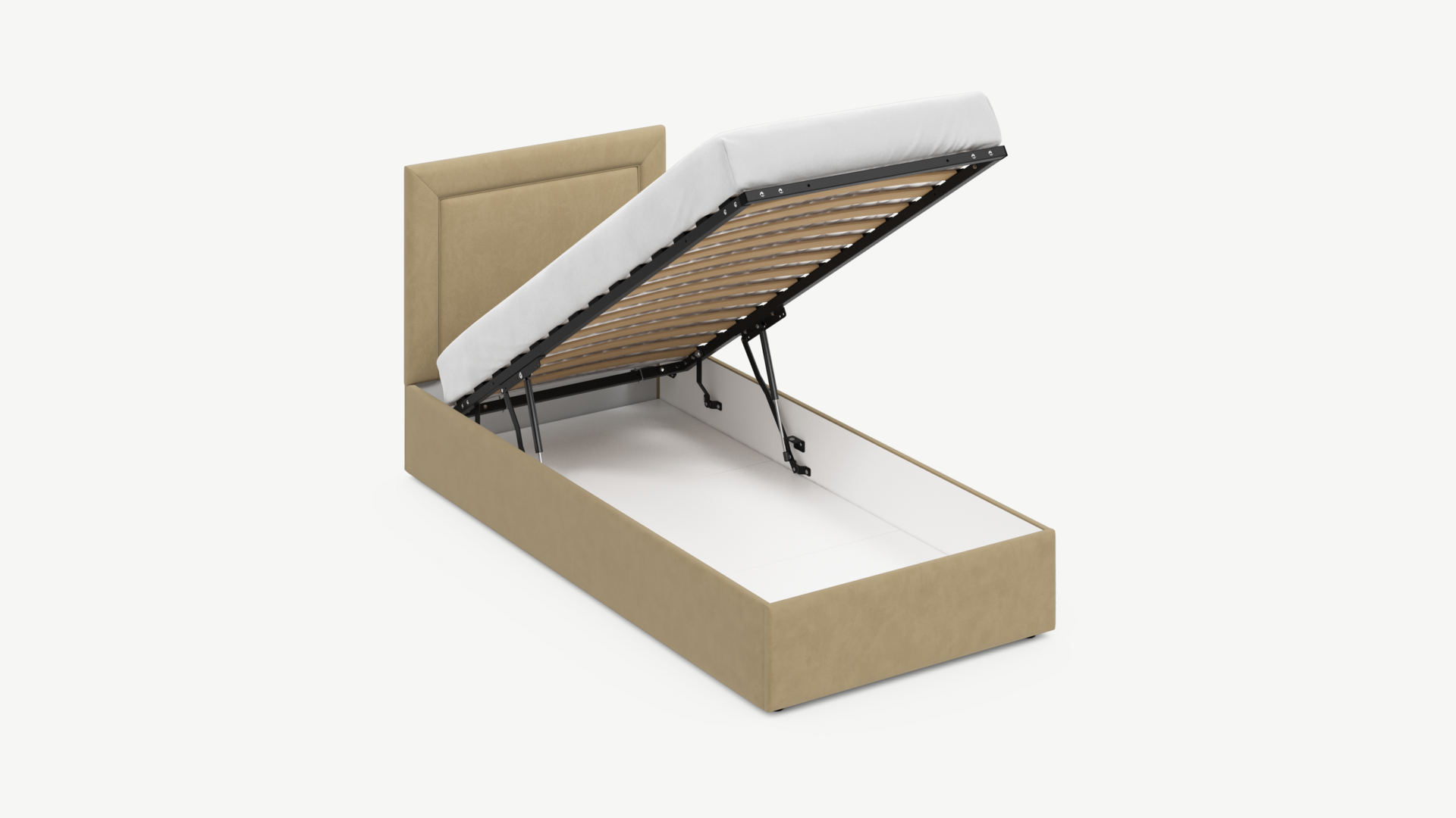 Регулируемый подъемный механизм с газовыми амортизаторами позволяет плавно и бесшумно поднимать и опускать спальное место.