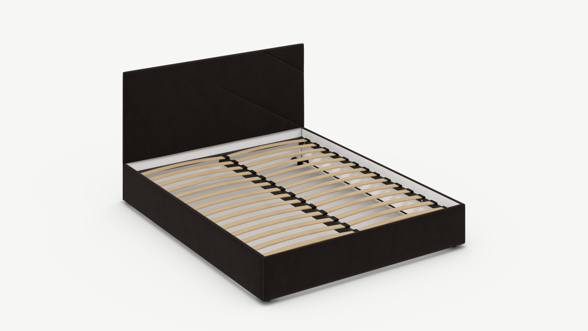 MOON FAMILY 1257 привлекает внимание оригинальным исполнением: широкие полосы ткани эффектно пересекают периметр изголовья, создавая на нем графический орнамент. Элегантным и практичным акцентом служат скрытые карманы, расположенные по его углам. Лаконичные формы объемных царг создают единый гармоничный образ и фокусируют внимание на центральном текстурном элементе кровати.