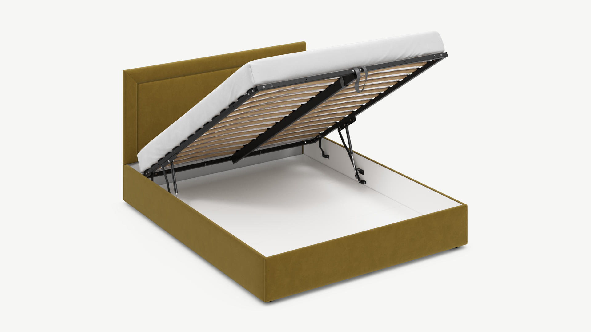 • Скрытая под основанием вместительная емкость без внутренних перегородок позволяет использовать всю площадь подкроватного пространства для хранения вещей.