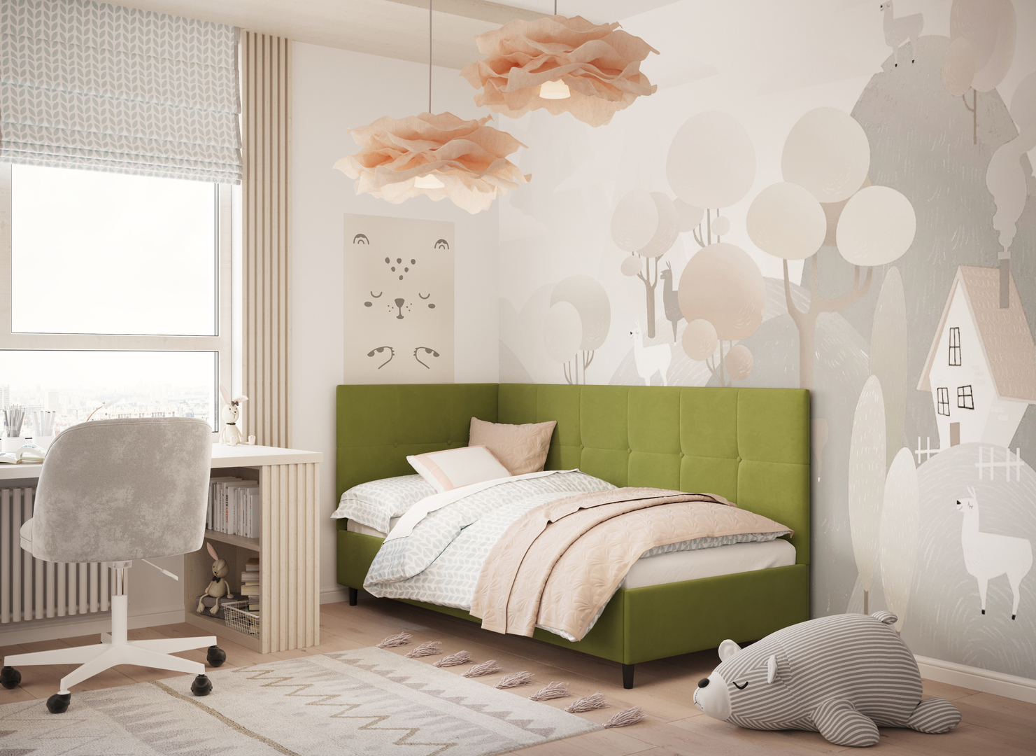MOON FAMILY 1261 объединяет функциональность и стиль, создавая гармоничное пространство для отдыха и творчества. Кровать доступна в левостороннем и правостороннем исполнении, что позволяет легко адаптировать ее под любые интерьерные особенности.
