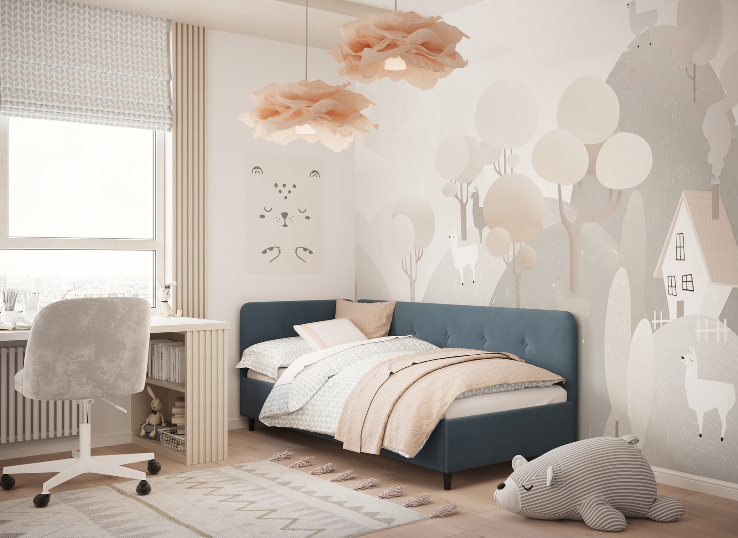 В подростковой комнате эта кровать станет стильным акцентом окружающего интерьера и возьмет на себя роль удобной кушетки для друзей, зашедших в гости.