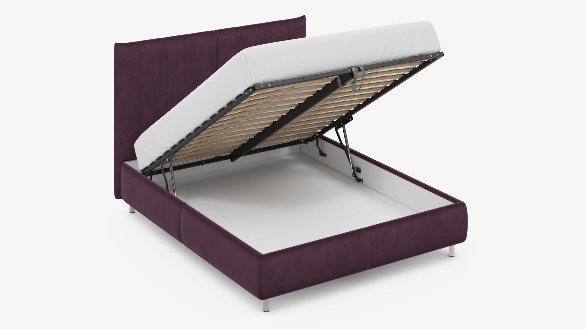 • Скрытая под основанием вместительная емкость без внутренних перегородок позволяет использовать всю площадь подкроватного пространства для хранения вещей.