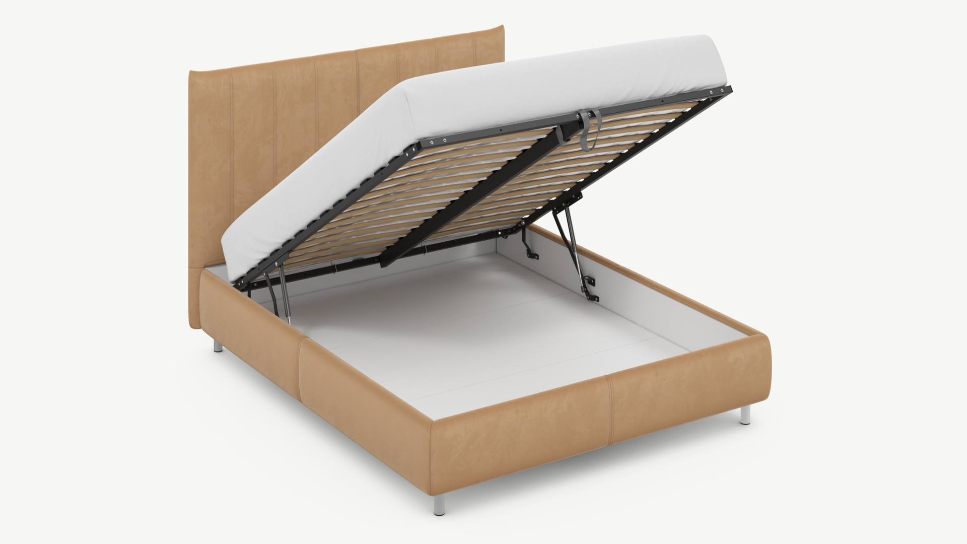 • Скрытая под основанием вместительная емкость без внутренних перегородок позволяет использовать всю площадь подкроватного пространства для хранения вещей.